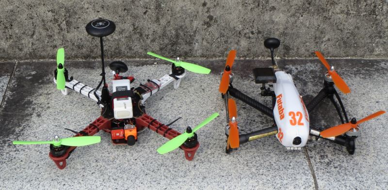 Vortex285の部品を使用して手持ちキットのDJI F330(左側機体)を製作しました。