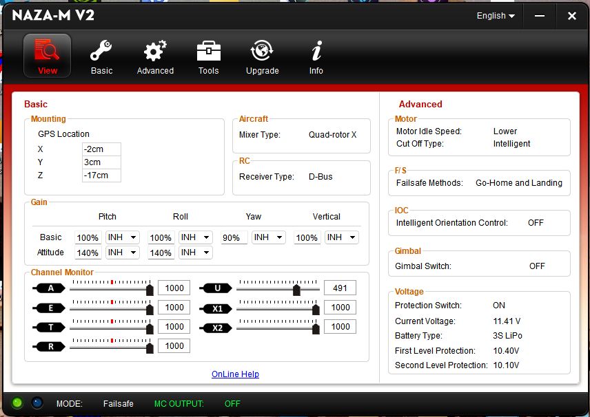 NAZA-M LITEフライトコントローラーは4年ぐらい前にセットアップしているので記憶に残っておらず、過去ブログ記事を見ながらセッティングしました。